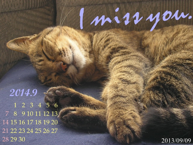 8月28日![]() トラ子が姿を消してから間もなく四カ月だ。この写真は昨年の9月に撮影したものを編集してgoogle+にUpしたものだ。今頃は、どこで寝ているのだろう。寝顔がとてもチャーミングで、頭を撫でると顎の下も撫でてと言わんばかりに顎を伸ばしてきた子だった。会いたい・・・ここをクリックすると大きく表示されます(大きさ640x480,280KB)。 |