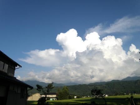 盆が過ぎたのに日中の暑さは衰えず・・・。只今の室温は33℃!豪雨で被害が出ている所があるのに、ここは雨を日々願う連日。今日も発達した入道雲は見られ、山沿いでは雨が降ると天気予報がされているけど、降ってこない。