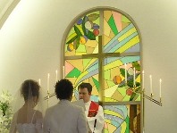 チャペルでの結婚式! 新郎・新婦ともに、眩しい程に輝いていました! 新婦の美しさに、甥もやるもんだと関心!